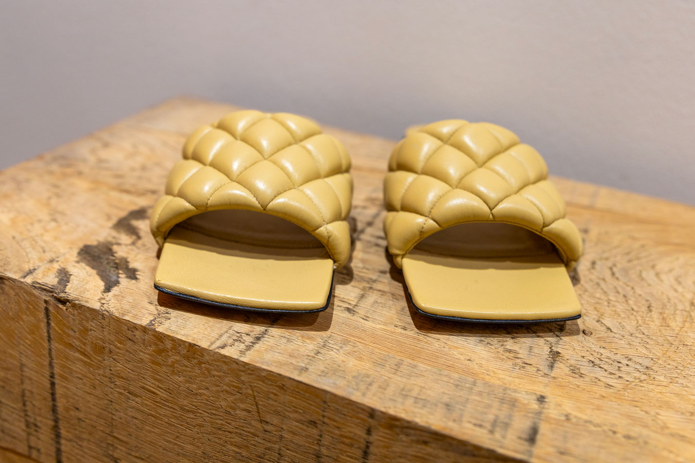 Sandales Lido en cuir jaune Bottega Veneta Hauteur talons : 1,5 cm Plateforme : 1 cm