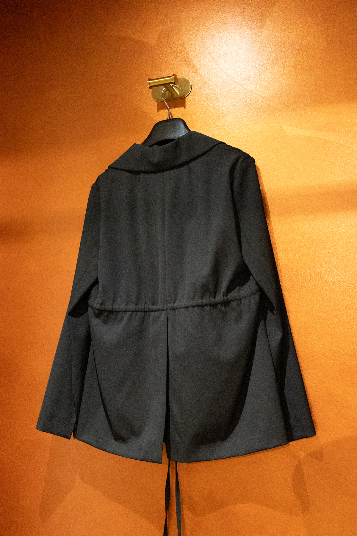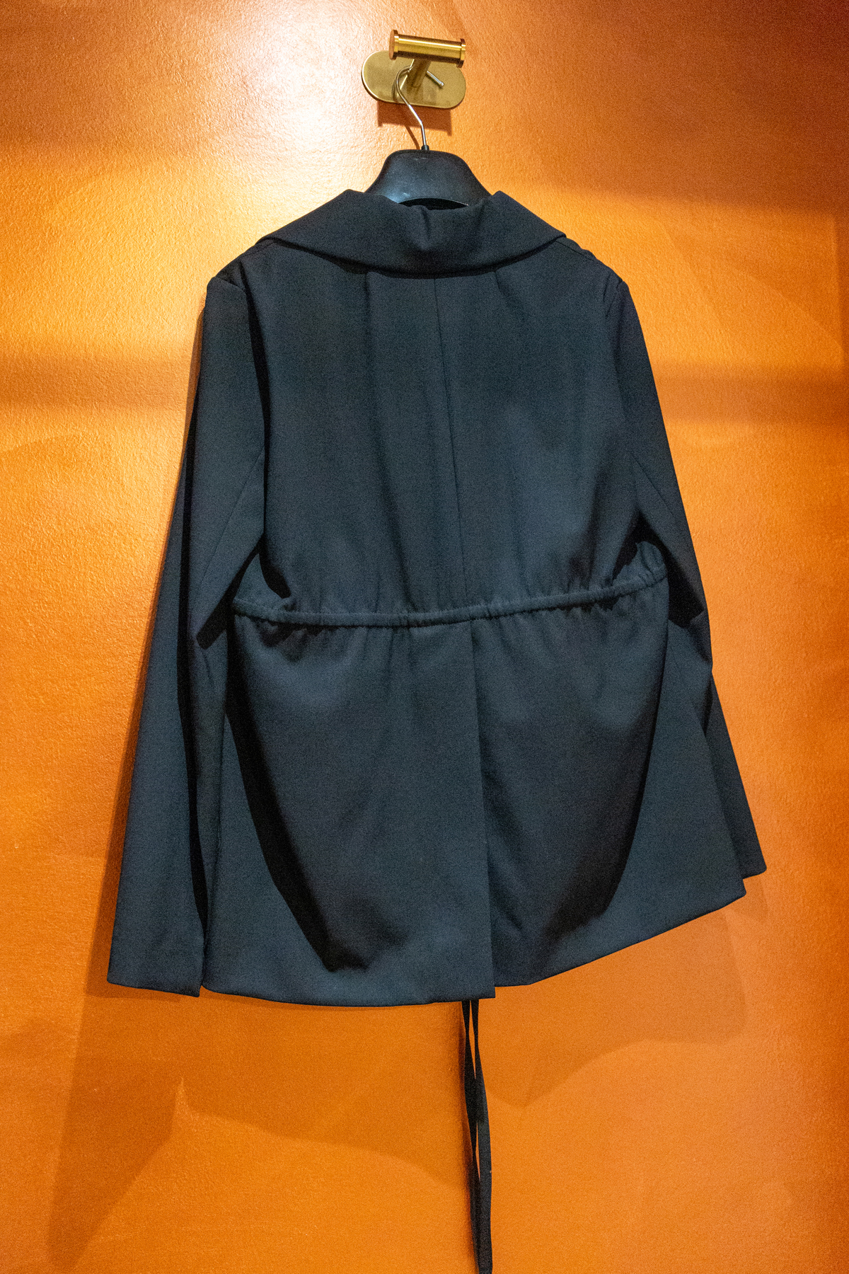 Larges poches arrondies. Fentes aux poignets et au dos.